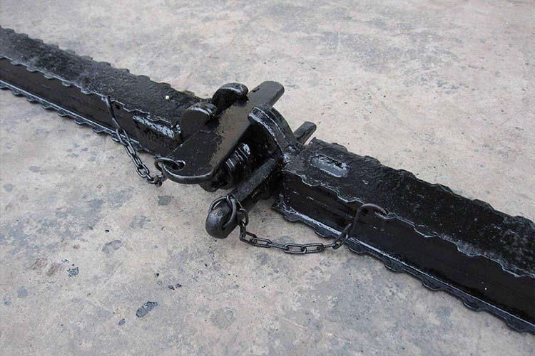 鉸接頂梁是煤礦巷道中常用的支護(hù)頂梁,其長度比較短,帶有鉸接連接頭,它可以與帶有鉸接頂蓋的各種類型的單體液壓支柱配合使用組成金屬支架,供煤礦的水平及緩傾斜回采工作面支護(hù)使用。鉸接頂梁能懸臂支護(hù)工作面輸送機(jī)上面的頂板,使煤壁與支柱間有較大的空間,從而為采用新型采煤機(jī)械和可彎曲輸送機(jī),實(shí)現(xiàn)采煤機(jī)械化提供條件。